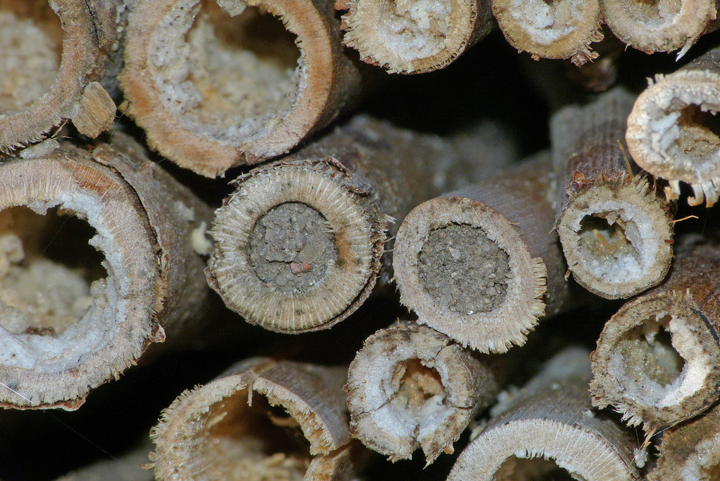 Es folgen Bilder, die meine Ausführungen veranschaulichen, ebenso ein paar Nahaufnahmen von verdeckelten Stängeln und Bohrlöchern im Hartholz.