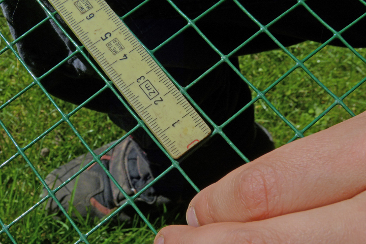 Vor Beginn der zweiten Insektenhotel-Saison wollte ich meine Beobachtungen und Erfahrungen in weitere Optimierungen einfließen lassen. Da überwiegend die kleinen Röhren belegt waren, befürchtete ich, dass doch zu enge Maschen des Drahtnetzes Schuld daran sein könnten. Also verwendete ich diesmal ein anderes Gitter mit 19 mm Drahtweite. Gegebenenfalls müssten die offenen Seiten bis zur Hotelfront ebenfalls mit Gitterdraht verschlossen werden, für den Fall, dass Vögel dahinter krabbeln.