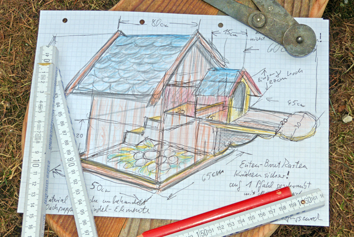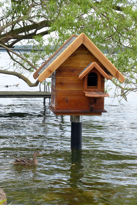 Eine ältere Dame aus dem Bekanntenkreis wünschte sich ein Entenhaus, eine Bruthilfe für die heimischen Wasservögel. Nach einiger Recherche entschied ich mich für den Selbstbau, denn die meisten angebotenen Bruthäuser taugen allenfalls als Futterstellen für Krähen, Wasserratten oder Marder.