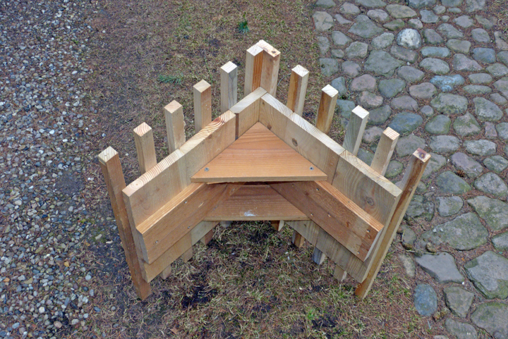 Zur Verdeutlichung folgt nun eine Bilderreihe mit den wichtigsten Bauabschnitten. Übrigens: ein Entenbruthaus, sorgfältig und in netter Optik gefertigt, muss sich nicht verstecken, wenn es in Blickachse mit Skulpturen am Ufer eines gestalteten Gartens betrachtet wird – aber sehen Sie selbst …