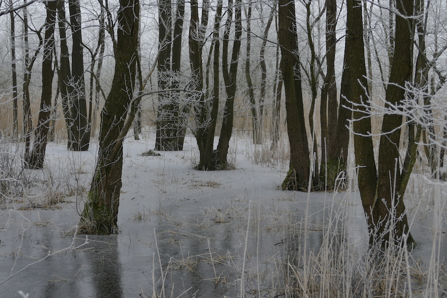 Ein kleiner Erlenbruch am Rottensee im winterlichen Gewand